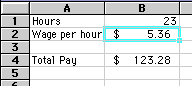 If you work for 23 hours and make $5.36 an hour, how much do you make? We can set up this situation using